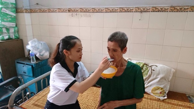 Trong số những cụ bà ở Chùa Bình An Bình Tân, có 3 cụ bị liệt nửa người và hai cụ bị mù. Việc ăn uống, sinh hoạt hàng ngày phải có người trợ giúp. Ngoài ra, có hai cụ khác mắc chứng bệnh ung thư. Một sư cô cho biết, cách đây vài tháng, hai cụ vẫn được điều trị hóa chất tại Bệnh viện Chợ Rẫy. Tuy nhiên, vì căn bệnh đã vào giai đoạn cuối nên bác sĩ đã đề nghị nhà chùa đưa hai cụ về chăm sóc. Giúp họ an dưỡng tại nhà để tạo cảm giác gần gũi, ấm cúng…